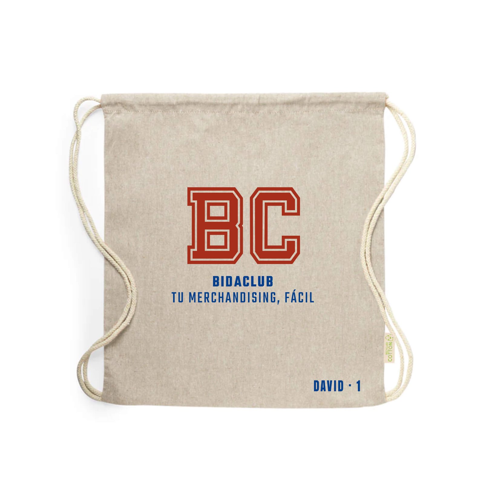 Mochila de cuerdas elaborada con algodón reciclado de 120 g/m². El diseño con las iniciales BC estampadas en el frontal transmite orgullo y pertenencia con un toque moderno. Sus cordones de algodón garantizan un cierre cómodo y seguro; perfecta para ropa deportiva, material escolar o lo que necesites. Personalízala con tu nombre o dorsal y añádele exclusividad. Ligera, resistente y comprometida con el medio ambiente: un básico que acompaña cada entrenamiento.