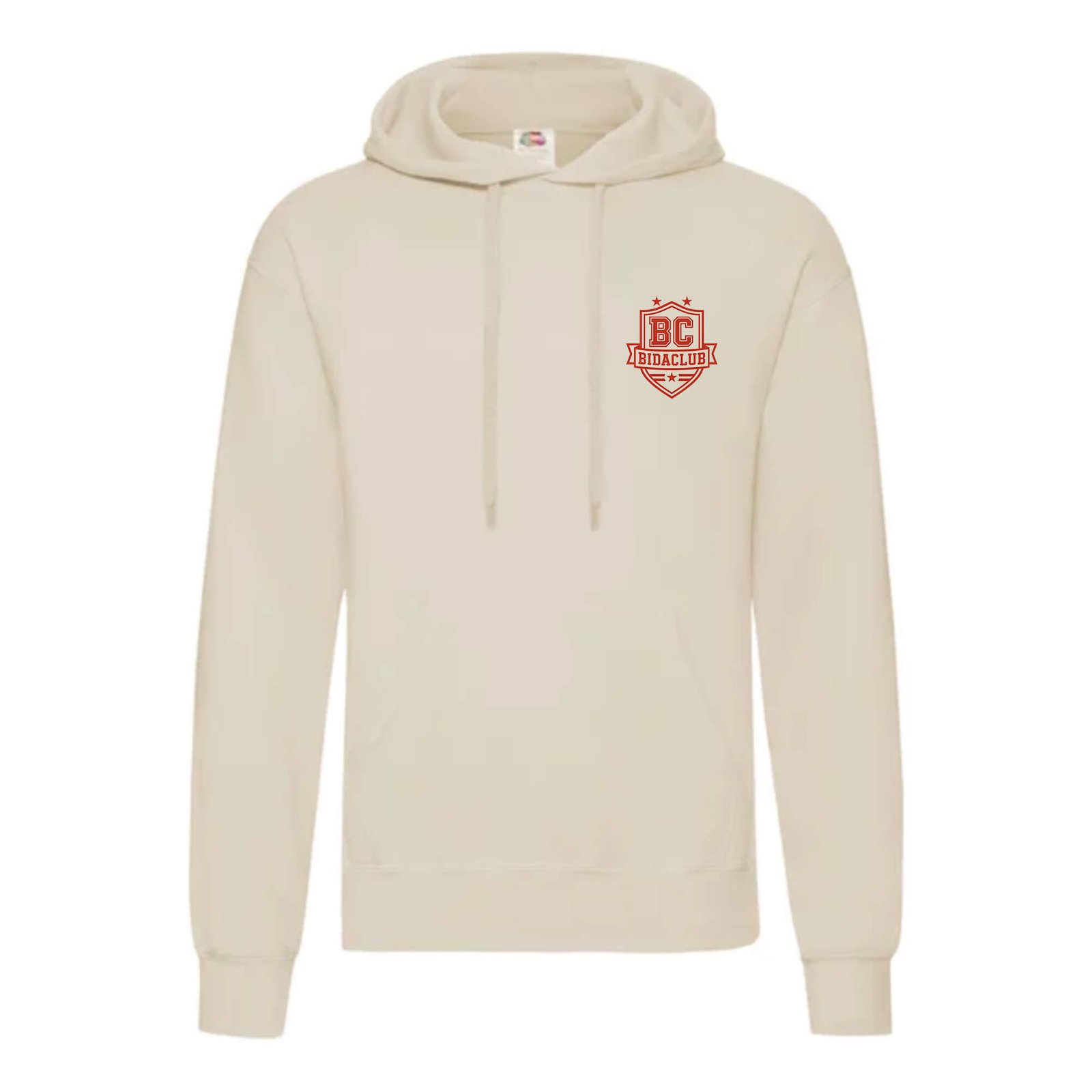 Sudadera de mezcla algodón 80% / poliéster 20% con interior afelpado, pensada para abrigar con comodidad. El escudo del Bidaclub luce en el pecho con orgullo. Cuenta con capucha de doble tejido, cordones a juego y bolsillo frontal tipo canguro. Personalízala con tu nombre o dorsal y llévala en entrenos, viajes o días de partido.