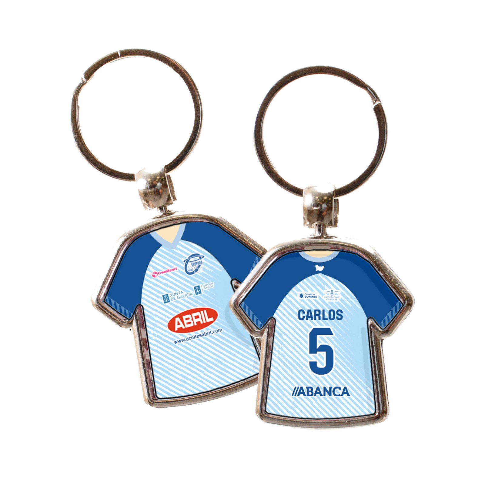 La camiseta del CC Vedruna de fútbol sala, en tu llavero. Brillante, resistente y con tu nombre y dorsal ⚽.