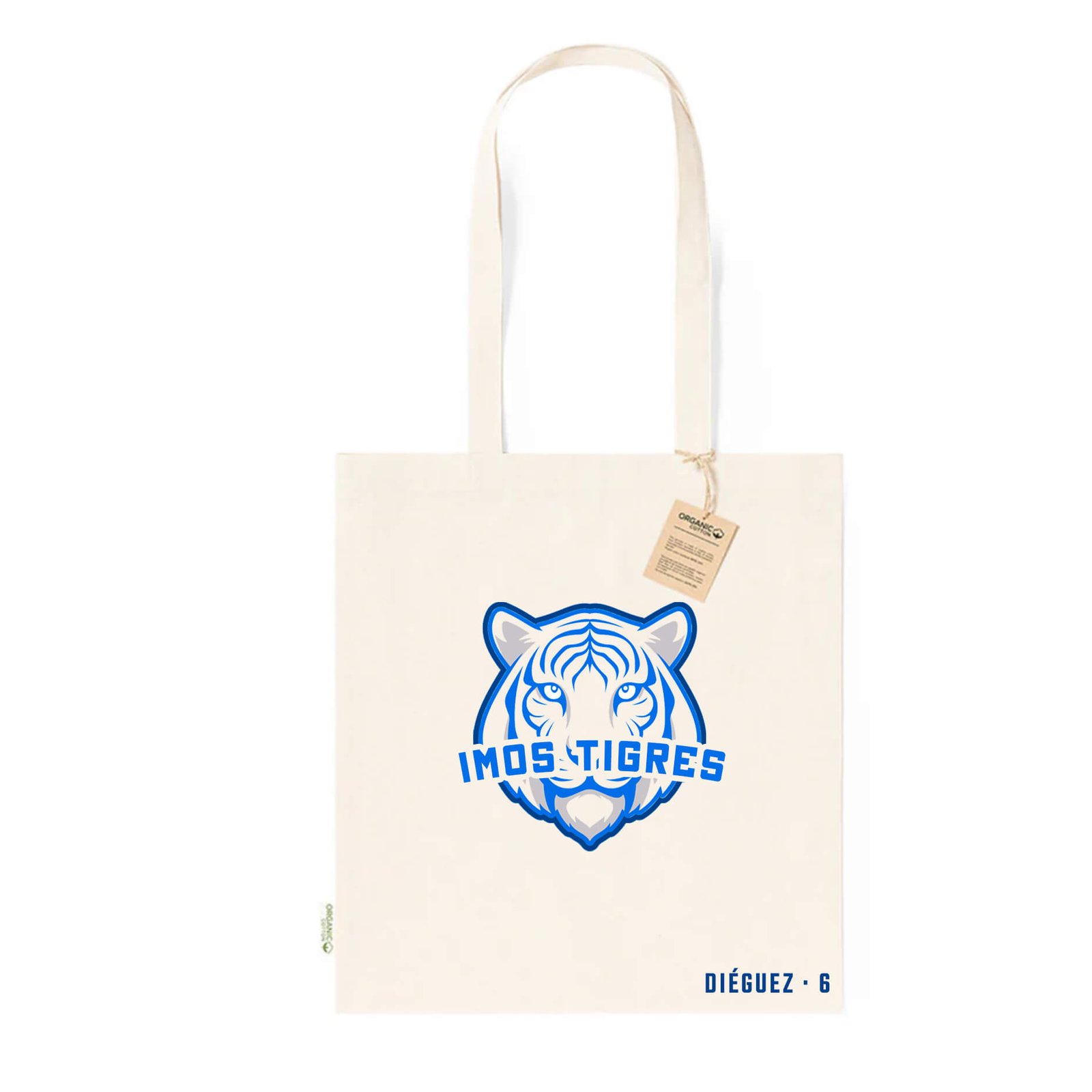 Confeccionada en algodón orgánico 100% de 180 g/m², esta bolsa une estilo, sostenibilidad y funcionalidad. Su tono natural y asas medianas reforzadas facilitan el uso diario: entreno, biblioteca o compra del sábado. El escudo del Depordima Basket preside el diseño con un aire elegante y deportivo. Personalízala con tu nombre o dorsal y conviértela en tu compañera inseparable. Resistente hasta 8 kg, con acabado cosido duradero. Apoya al planeta y al club en cada paso.