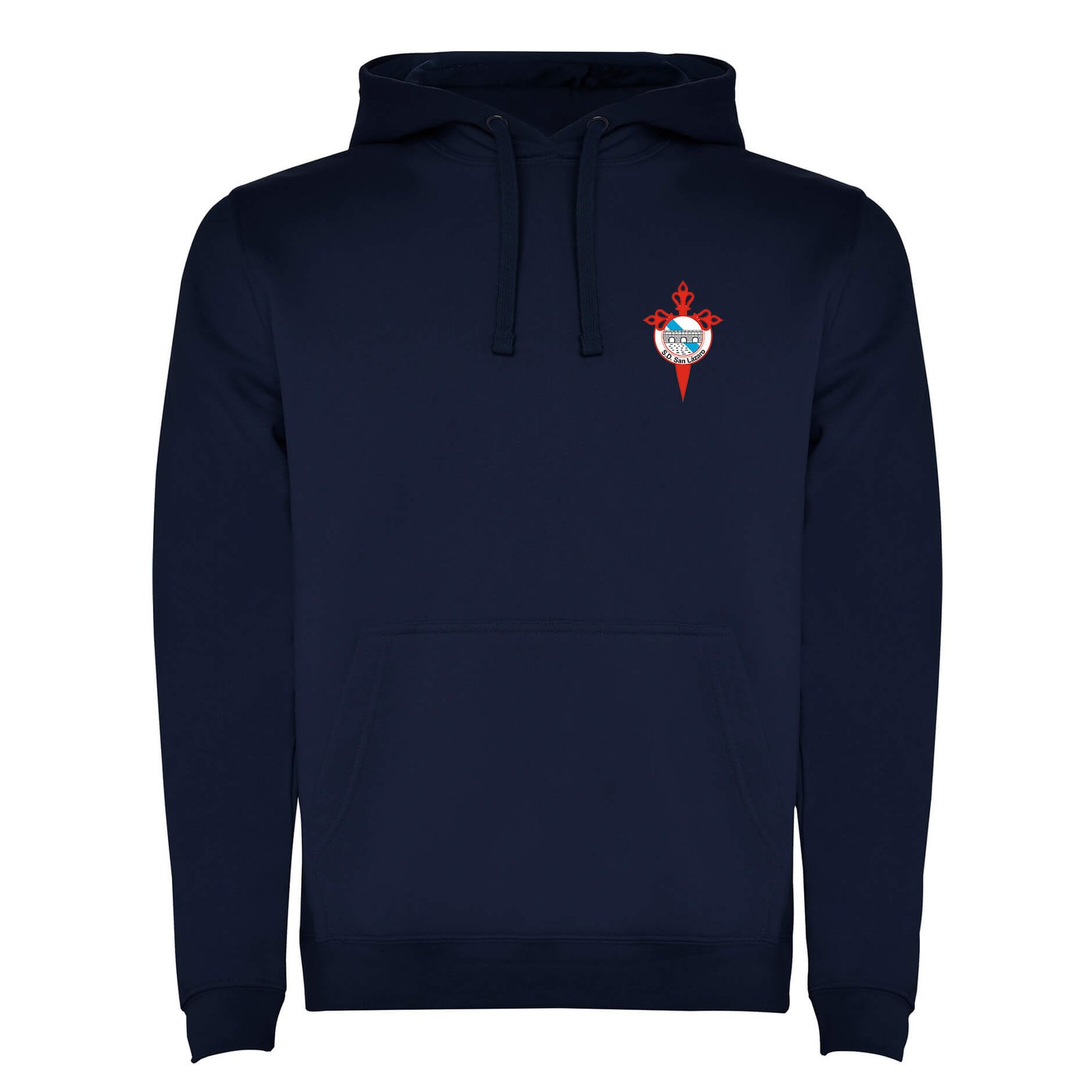 Sudadera de mezcla algodón 80% / poliéster 20% con interior afelpado, pensada para abrigar con comodidad. El escudo del San Lázaro luce en el pecho con orgullo. Cuenta con capucha de doble tejido, cordones a juego y bolsillo frontal tipo canguro. Personalízala con tu nombre o dorsal y llévala en entrenos, viajes o días de partido.